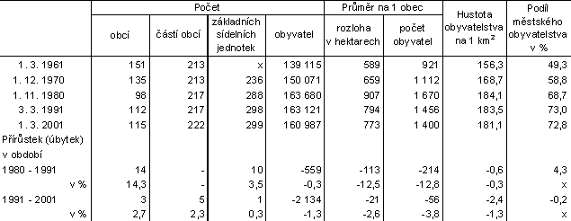 Tab. 1 Základní údaje o obcích