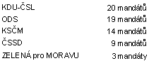 Ze všech stran, které získaly ve volbách mandát, se zastupiteli stali kandidáti v tom pořadí, v jakém byli na hlasovacím lístku, jedinou výjimkou je koalice ZELENÁ pro MORAVU, kde na základě přednostních hlasů získal mandát jako první kandidát na 16. místě, jako druhá kandidátka na 22. místě a jako třetí kandidát na 1. místě na hlasovacím lístku.