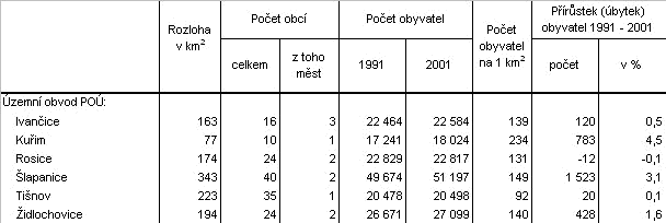 Tab. 3 Obyvatelstvo podle územních obvodů pověřených obecních úřadů podle stavu k 1. 3. 2001