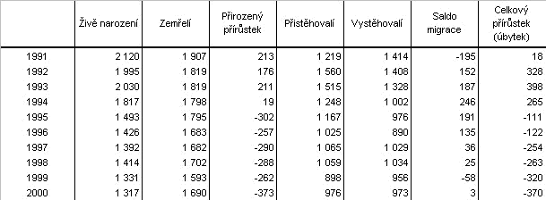 Tab. 5 Bilance pohybu obyvatelstva v letech 1991-2000