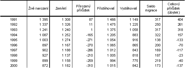 Tab. 4 Bilance pohybu obyvatelstva v letech 1991 – 2000