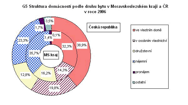 Graf 5 Struktura domácností podle druhu bytu v Moravskoslezském kraji a ČR v roce 2006