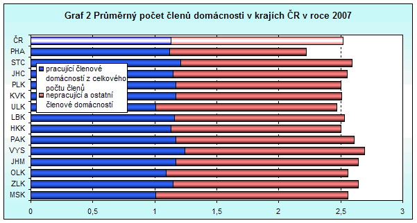 Graf 2 Průměrný počet členů domácnosti v krajích ČR v roce 2007