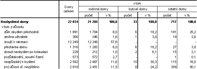 Tab. 6.1.3 Důvody neobydlenosti domovního fondu