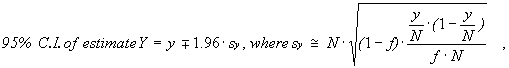 The confidence intervals in Annex Tables I and II are calculated for the sample size in a given quarter. In order to calculate confidence intervals of aggregates for other quarters and partial aggregates for the Regions and Areas, the following formula and Table III should be used.