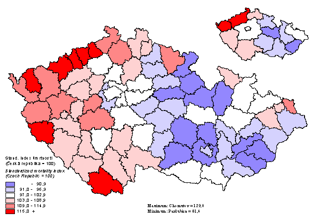 10. Standardizovaná úmrtnost na zhoubné novotvary – průměr za roky 1996-1999