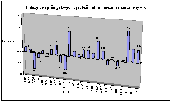 V březnu 2007 se ceny průmyslových výrobců meziměsíčně zvýšily o 0,5 % (stejně jako v únoru). Stouply hlavně ceny v odvětví koksu a rafinérských ropných výrobků o 5,2 % (po šesti měsících poklesů už druhý měsíc opět rostou).