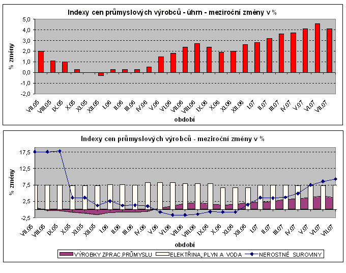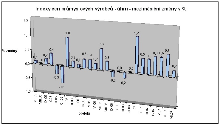 V červenci 2007 meziměsíčně vzrostly ceny průmyslových výrobců o 0,2 %, což je nejnižší tempo růstu v roce 2007.