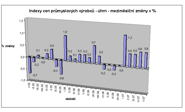 V květnu 2007 stouply ceny průmyslových výrobců oproti předchozímu měsíci o 0,6 % (shodně jako v dubnu 2007).
