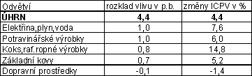 Vybraná odvětví, která nejvíce ovlivnila výši celkového meziročního indexu: