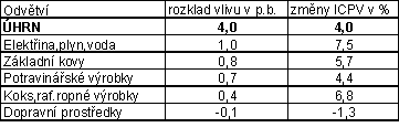 To je způsobeno zejména vyššími cenami v odvětví elektřiny, plynu a vody o 7,5 %. Významně se zvýšila také cenová hladina v odvětví základních kovů, hutních a kovodělných výrobků o 5,7 % (v srpnu o 6,9 %). Ceny v potravinářském odvětví stouply o 4,4 % (v srpnu o 4,0 %). Ke změně trendu došlo v odvětví koksu a rafinérských ropných výrobků růstem cen o 6,8 % (v srpnu pokles o 2,1 %). Ceny v odvětví dopravních prostředků klesly o 1,3 % (v srpnu o 0,8 %).