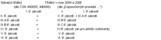 Od ledna loňského roku došlo ve výkaze Ceny Les 1-12 k vypuštění sledování ukazatele „bříza“ a k rozšíření reprezentanta „Výřezy III. třídy jakosti“ o třídy C a D podle Doporučených pravidel pro měření a třídění dříví v ČR. Publikované tabulky cen surového dříví za ČR v Kč/m3 (průměrná cena ze sl.1 výkazu) jsou od ledna loňského roku publikovány v rozsahu reprezentantů uváděných ve schváleném výkaze pro rok 2005.