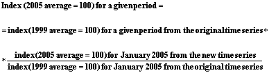 a) The continuation of the time series of price indices ‘1999 average = 100’ (previous validity up to December 2006, following the release of the new time series validity up to January 2005 only) will be ensured by linking the new time series to the original one in the following manner:
