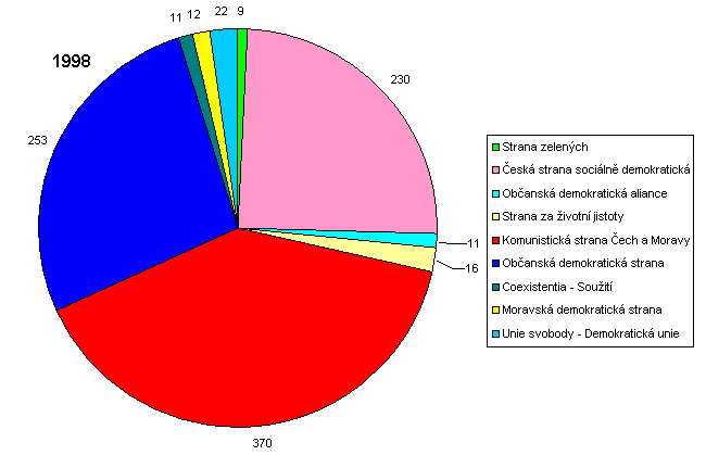 Následující grafy vznikly porovnáním počtu mandátů pro členy politických stran v letech 1994 a 1998. Rok 1990 zde neuvádíme z výše zmíněných důvodů. Pro větší přehlednost byly vypuštěny ty politické strany, které nezískaly více než pět mandátů. Jejich počet udávají čísla u jednotlivých výsečí.