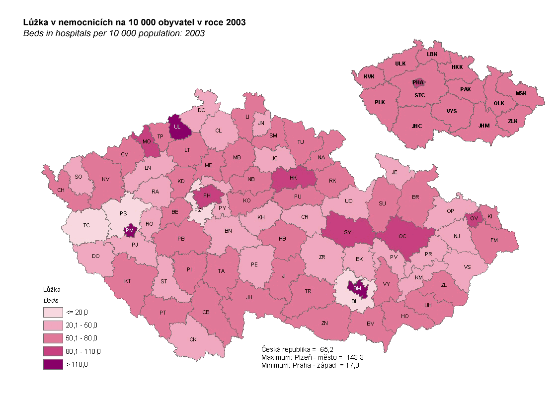 25. Lůžka v nemocnicích na 10 000 obyvatel v roce 2003