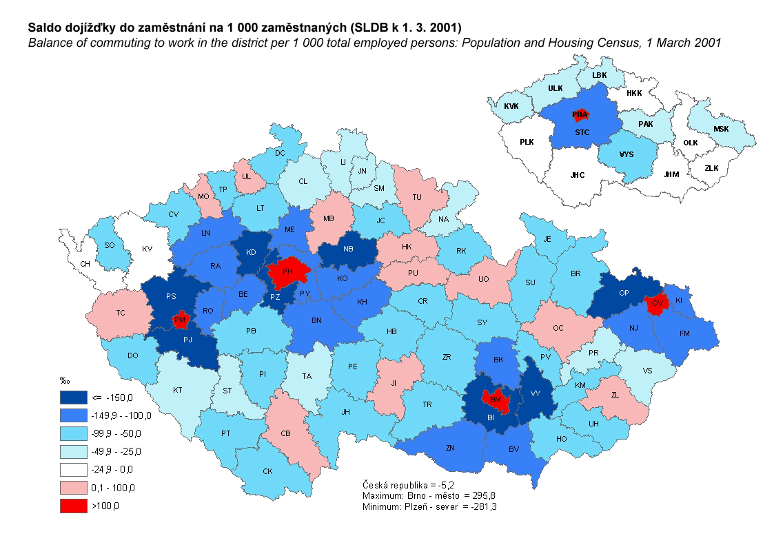 36. Saldo dojížďky do zaměstnání na 1 000 zaměstnaných (SLDB k 1. 3. 2001)