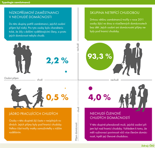 Z hlediska toho, zda jsou zaměstnanci chudí podle osobního příjmu a/nebo příjmu domácnosti, je možné zaměstnance rozdělit do čtyř skupin (obr.).