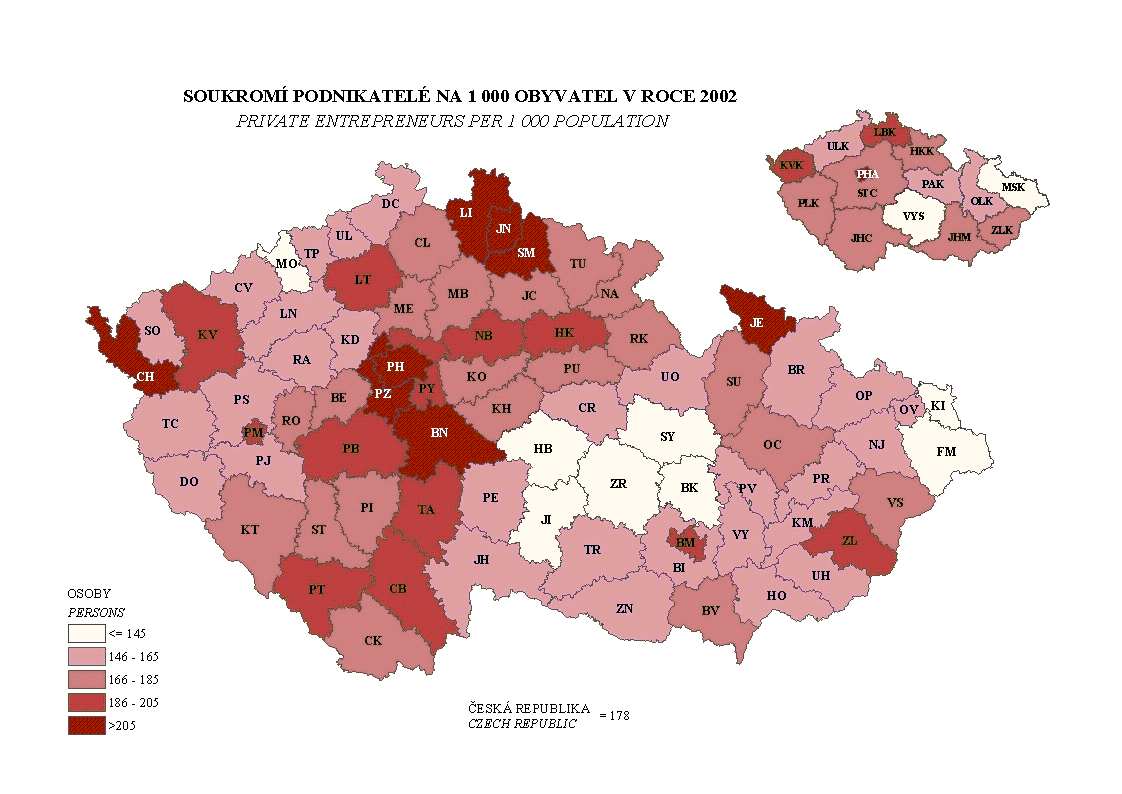 Private entrepreneurs per 1 000 population (cartogram)