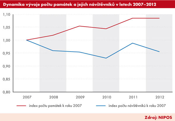 Ze statistik Národního informačního a poradenského střediska pro kulturu (NIPOS) vyplynulo, že do necelých tří set zpřístupněných hradů, zámků, klášterů a ostatních památek na území ČR přišlo ve sledovaném období 10 až 12 mil. návštěvníků, nejvíce v roce 2007 (12,167 mil.). Od té doby, s malými výkyvy, návštěvnost klesá (vloni na 11,626 mil.). Pokles (–4,4 %) souvisel nejen s atraktivností jednotlivých objektů, ale i s možnostmi zajištění dalších doprovodných kulturních akcí, a také s turistickým ruchem (včetně zahraničních návštěvníků). Pokud byly objekty uváděny v nabídkách cestovních kanceláří a prezentovaly se přitažlivými hudebními, divadelními nebo jinými projekty, zaznamenaly návštěvnost vyšší.
