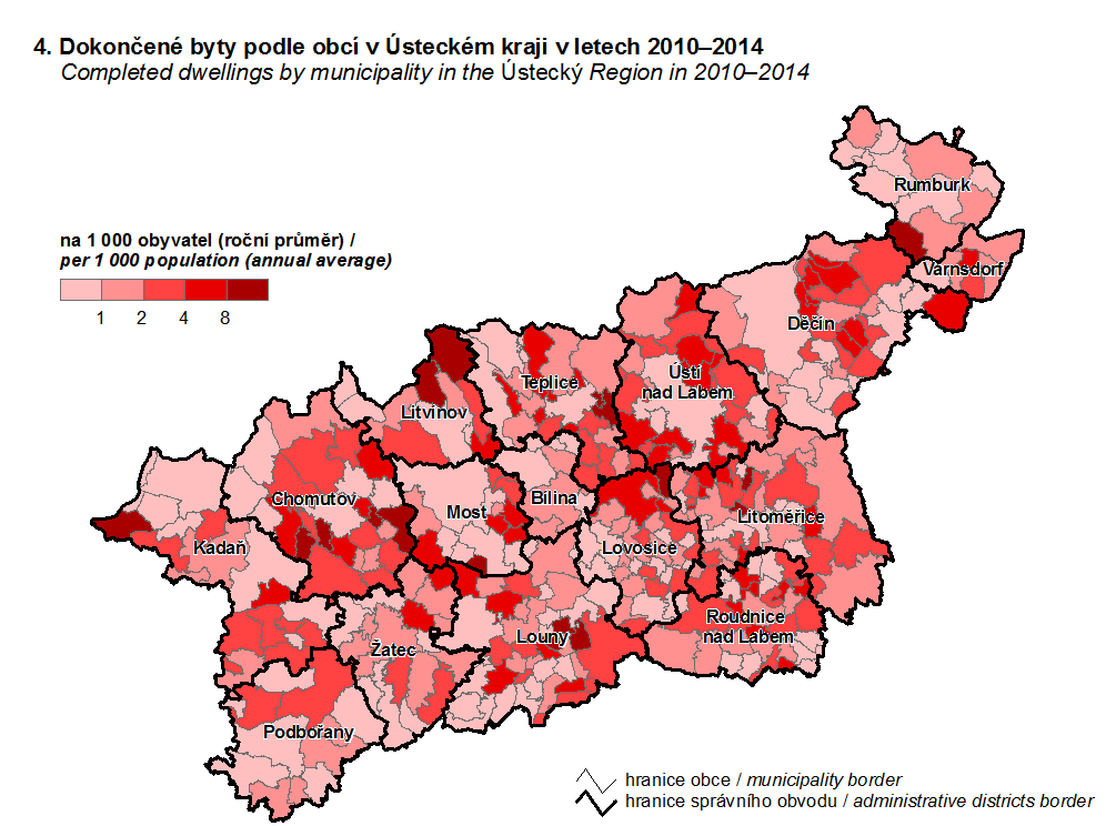 4. Dokončené byty podle obcí v Ústeckém kraji v letech 2010–2014