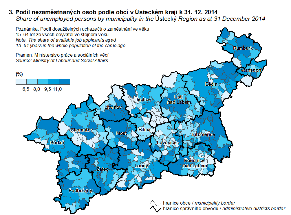 3. Podíl nezaměstnaných osob podle obcí v Ústeckém kraji k 31. 12. 2014