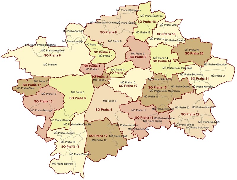 Správní členění hl. m. Prahy na správní obvody a městské části k 31. 12. 2020 (Praha 1-22)