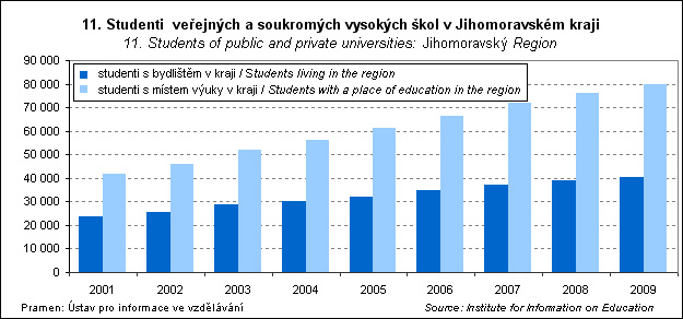 Grapg 11 Students of public and private universities: Jihomoravský Region