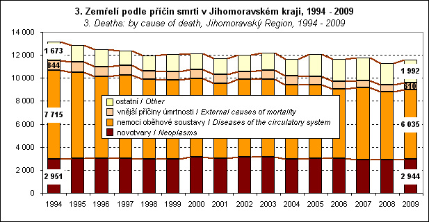 Graph 3 Deaths: by cause of death, Jihomoravský Region, 1994–2009