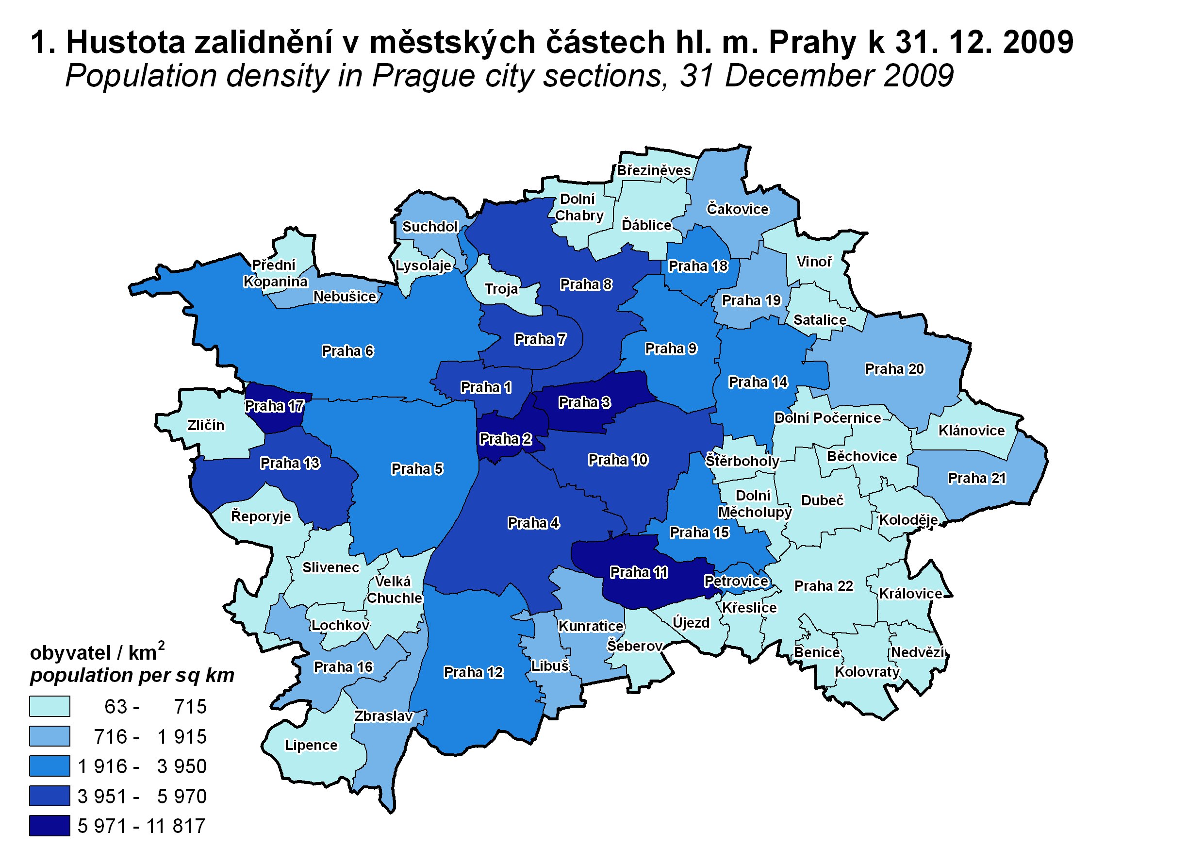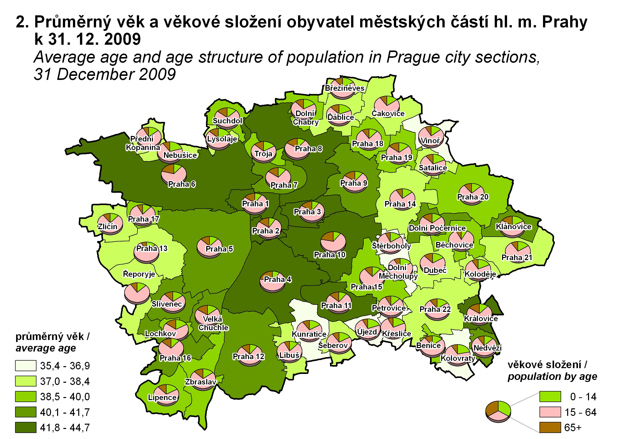 2. Average age and population by age of Prague city sections, 31 December 2009