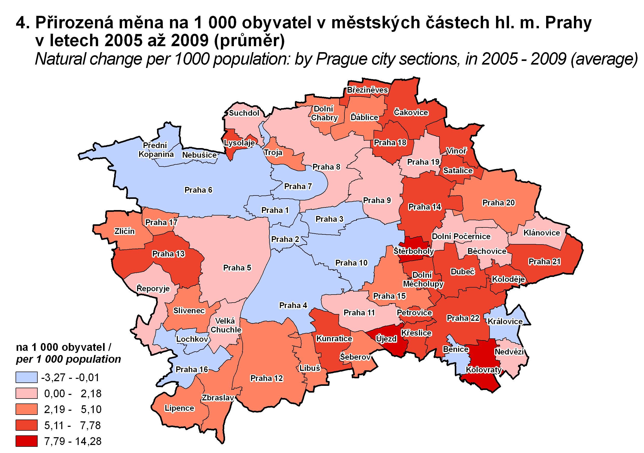 4. Natural change per 1000 population: by Prague city sections, in 2005-2009 (average)