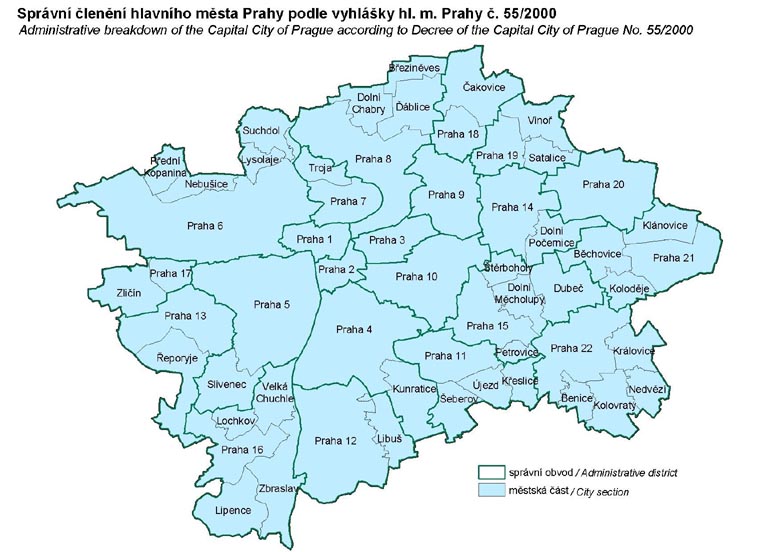 Administrative breakdown of the Capital City of Prague according to Decree of the Capital City of Prague No. 55/2000