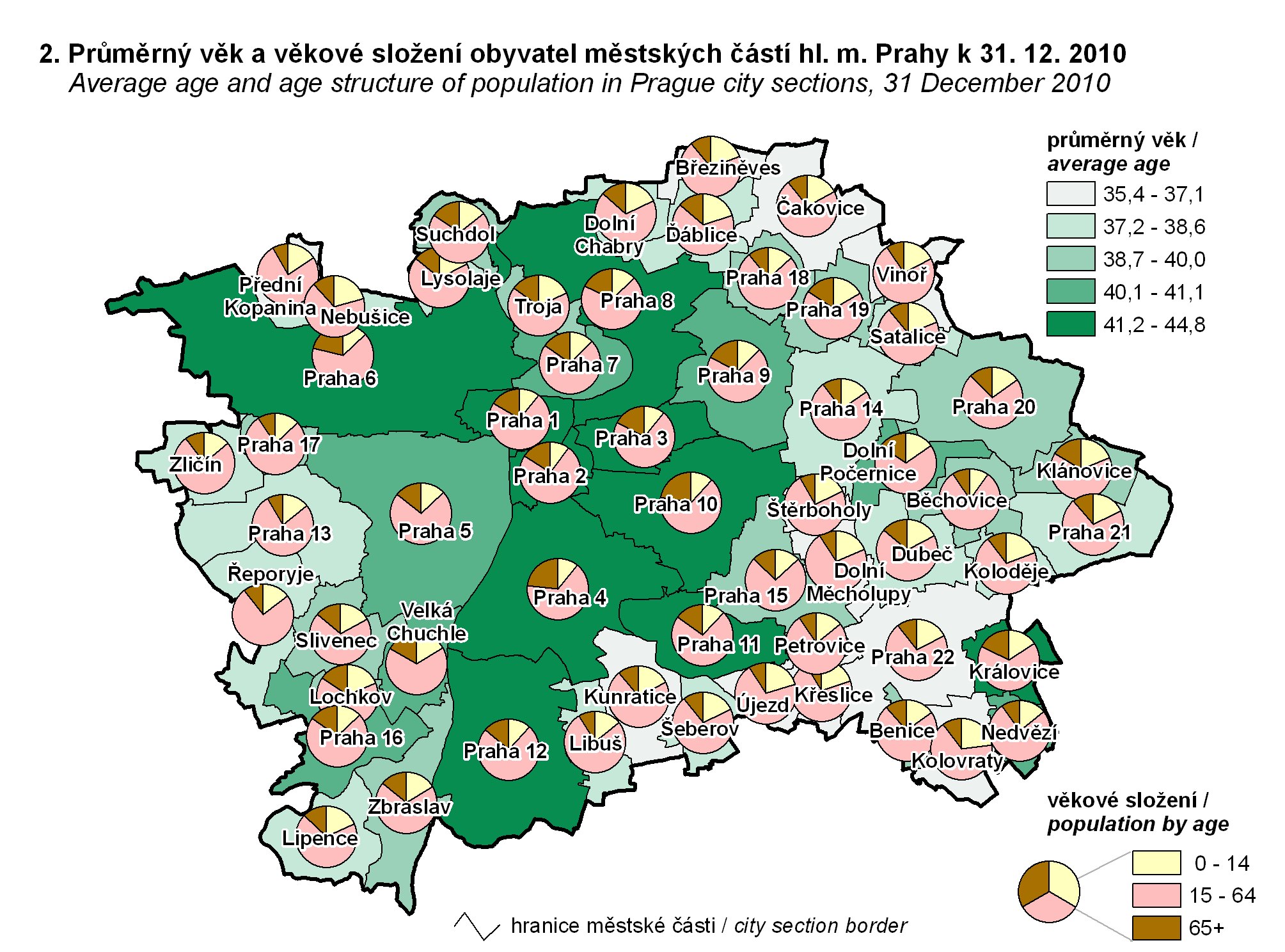2. Average age and age structure of population in Prague city sections: 31 December 2010