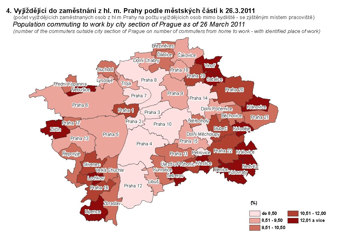 4. Population commuting to work by city sections of Prague as of 26. March 2011