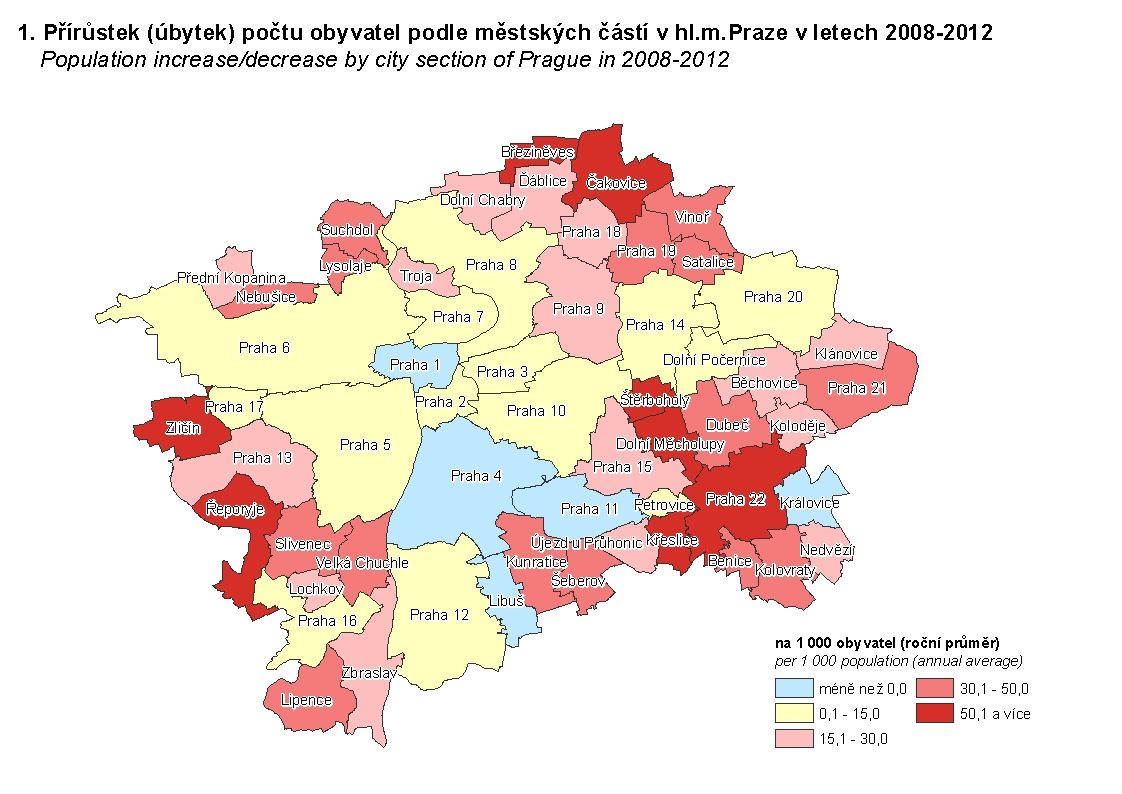 1. Population increase/decrease by city section of Prague in 2008–2012