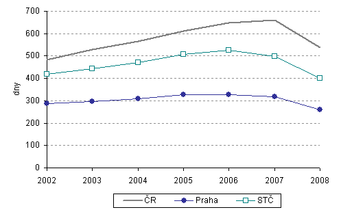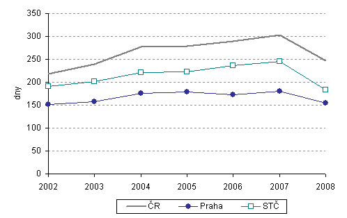 Přes zvyšující se podíl osob s délkou evidence do 3 měsíců v letech 2005-2007 docházelo ke zvyšování průměrné délky evidence. V roce 2008 došlo i ke zvýšení počtu krátce evidovaných uchazečů, průměrná délka evidence mírně poklesla.