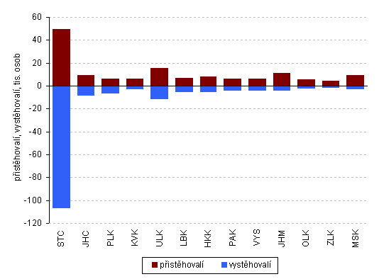 Nově příchozí obyvatelé v území se mohou přestěhovat z ostatních krajů České republiky, nebo se jedná o nově příchozí osoby z jiných zemí. Česká republika se v posledních letech stala cílem značného počtu imigrantů. V posledním desetiletí přišlo nejvíce obyvatel z jiných zemí v roce 2007 (104,5 tis.), ve stejném roce odešlo z České republiky pouze 20,5 tisíc osob. V roce 2008 došlo ke všeobecnému poklesu obratu pohybu obyvatel přes hranice České republiky, což pravděpodobně souvisí s nejistotou vyvolanou zhoršenou ekonomickou situací a sníženou mobilitou na trhu práce.