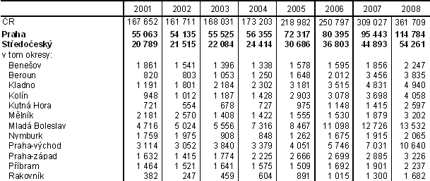 Tab. 5.2.2 Počet cizinců v Praze a Středočeském kraji v letech 2001-20081)