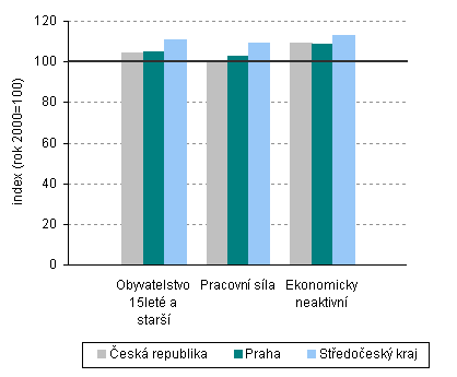 Došlo ke zvýšení počtu obyvatel starších 14 let v České republice (nejsou zde tedy započítané děti a žáci základních škol). Počet ekonomicky aktivních osob se v podstatě nezvýšil. Ekonomicky neaktivních osob proti stavu v roce 2000 přibylo nejvíce. Mezi ekonomicky neaktivní obyvatele patří kromě důchodců také rodiče na rodičovské dovolené, osoby v domácnosti a studenti. Pouze skupina rodičů pečujících o děti a osob, které odešly do důchodu zmenšila pracovní sílu, která byla doplněna nově vstupujícími osobami na trh práce, ať už se jednalo o občany ČR nebo cizince, kteří přišli do ČR za prací.