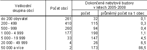 Průměrný počet dokončených budov s jinou než obytnou funkcí stoupá s počtem obyvatel v dané obci. Nebytové prostory souvisí s podnikatelskou aktivitou, která je podmíněna dostatkem zákazníků a možností provoz podniku zabezpečit zaměstnanci. Tyto podmínky jsou ve velkých městech a obcích výhodnější.