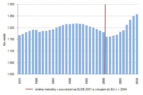 7. Vývoj počtu obyvatel hl. m. Prahy v letech 1975-2010
