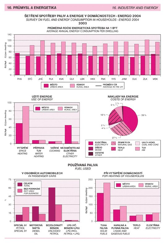 16-27. ENERGO 2004 - Průměrné roční náklady na spotřebovaná paliva a energie v bytech podle krajů v roce 2003