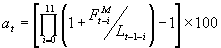 1. Měsíční procentuální změna a tM pro měsíc t se počítá podle vztahu: