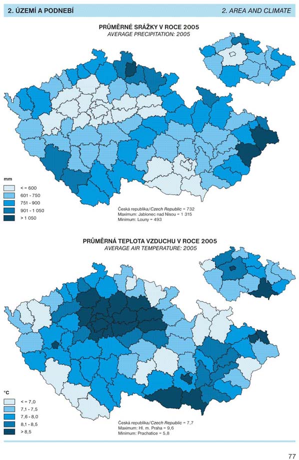 2- 3. Area of the Czech Republic, population, density of population per km2 and municipalities:by district, 31 December 2005