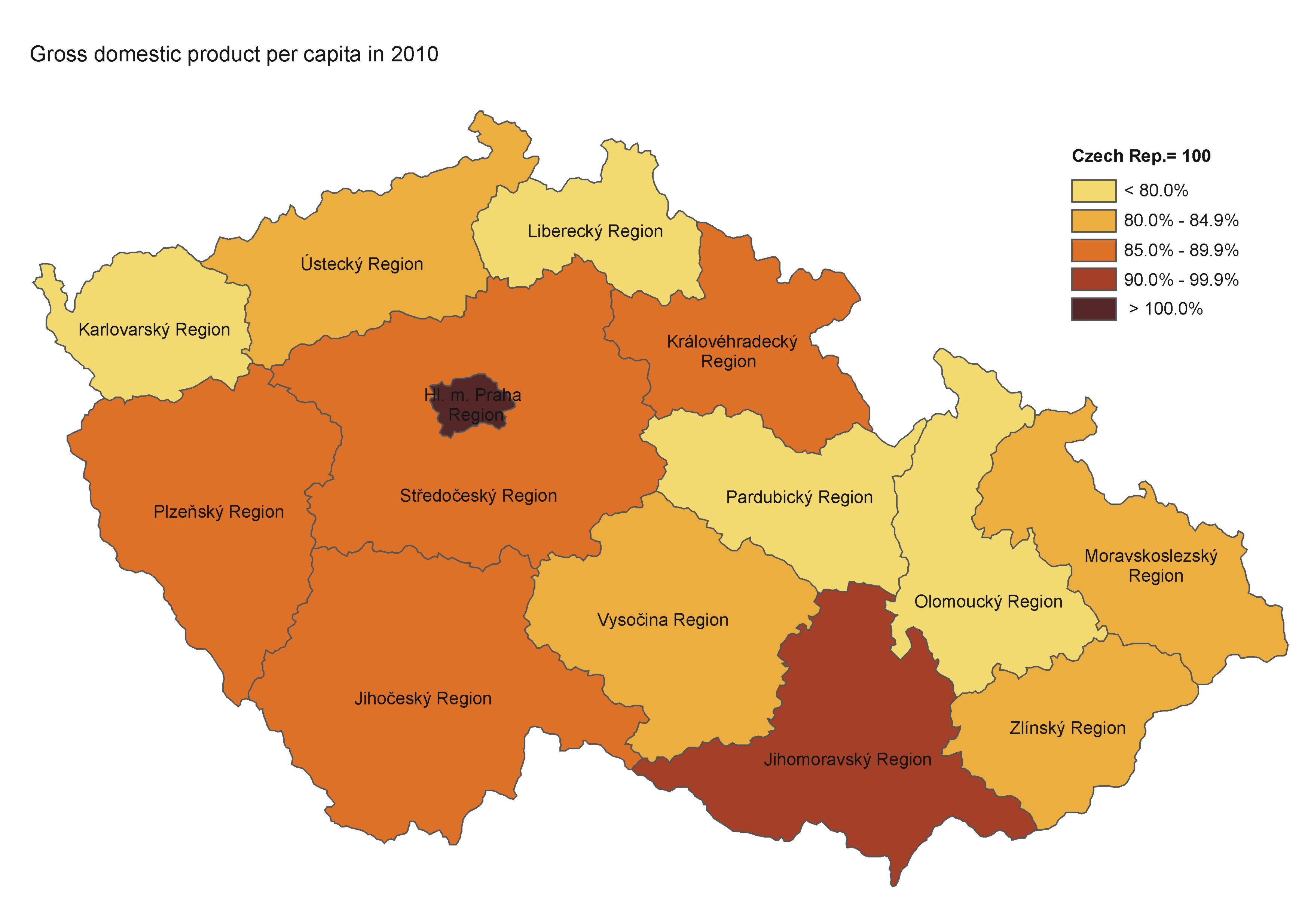 12-7. Gross domestic product per capita – by region – Czech Republic = 100