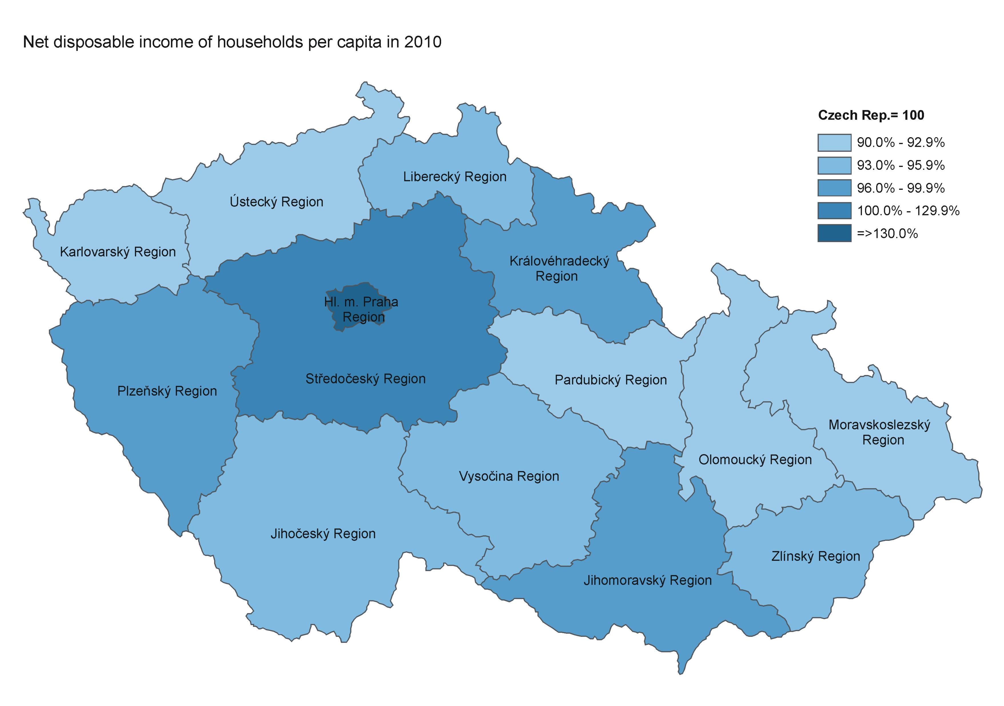 12-12. Net disposable income of households per capita – by region – Czech Republic = 100