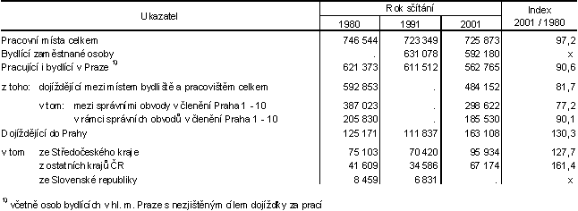 - Během 20 let od cenzu 1980 dochází v Praze k poklesu osob, které na území hlavního města bydlí a zároveň pracují; důvodem je zejména pokles bydlícího obyvatelstva, zvláště pak ekonomicky aktivního, zvýšený počet nezaměstnaných osob a vzrůstající počet obyvatel Prahy vyjíždějících za prací mimo hlavní město