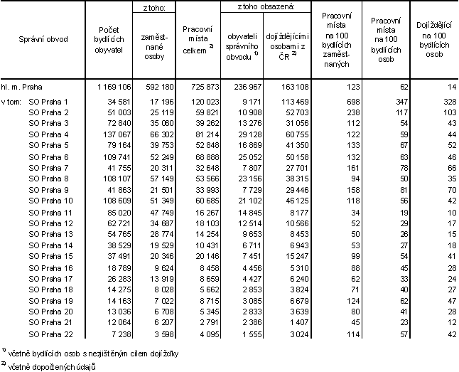 - Hlavní město Praha tvoří centrum pracovních příležitostí celé republiky, pracovní místa v Praze jsou z 22,5 % obsazena obyvateli jiných obcí ČR