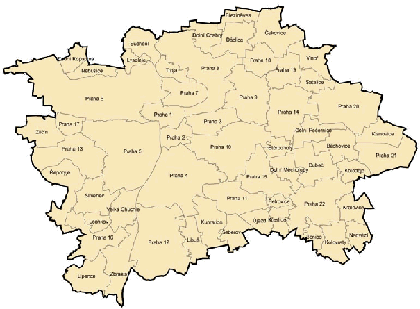 Administrativní mapa hl. m. Prahy (členění podle 5