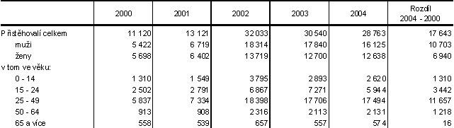 - Výrazný nárůst počtu přistěhovalých