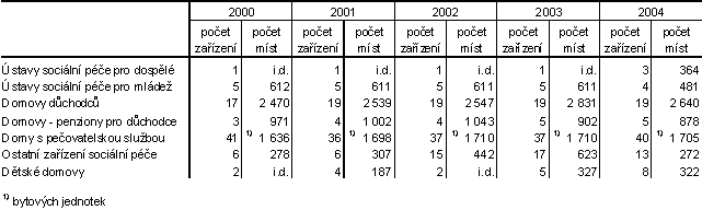- Počty míst v sociálních zařízeních jsou relativně nízké a kapacita se nerozšiřuje